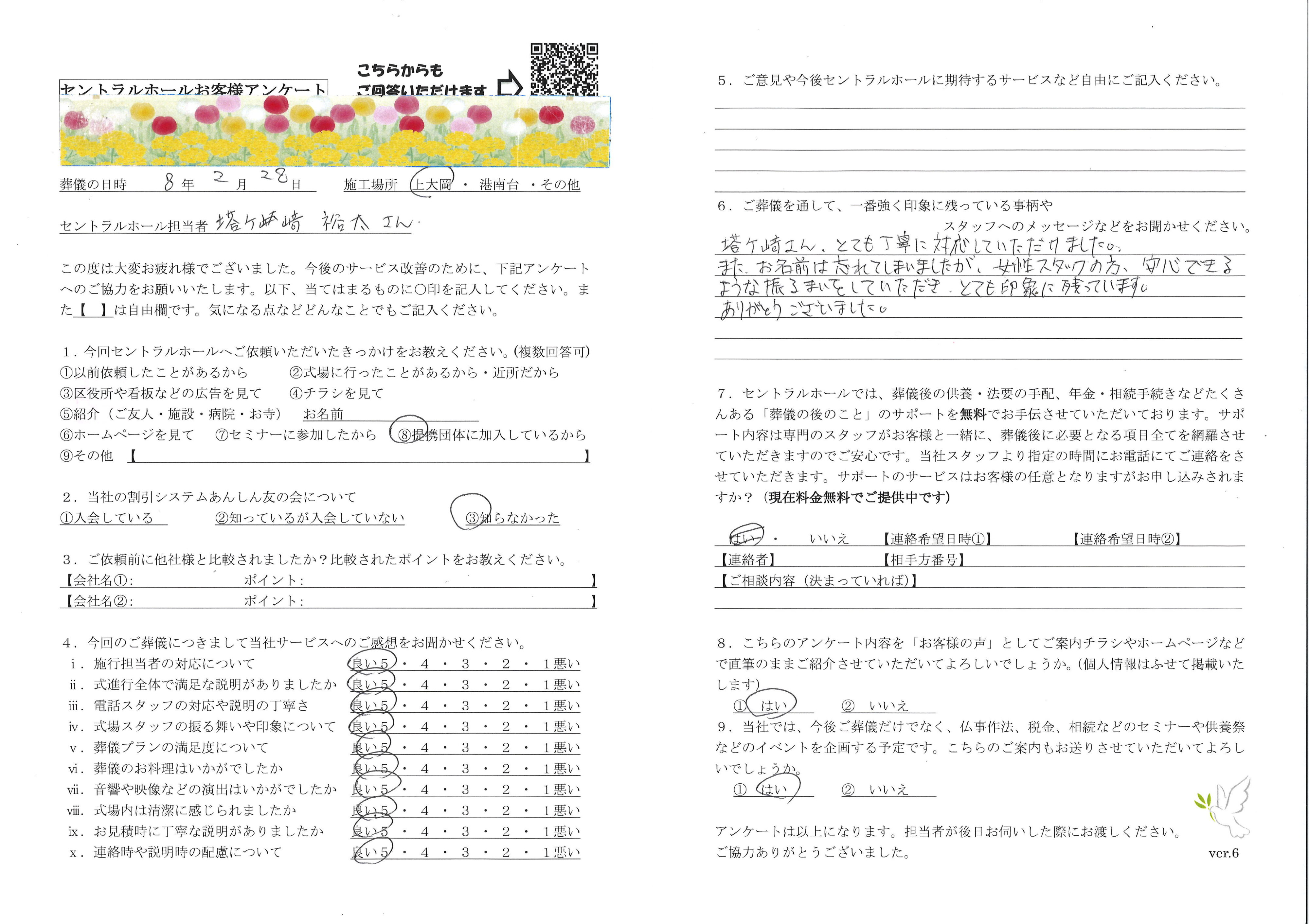 塔ケ﨑さん、とても丁寧に対応していただけました。 また、お名前は忘れてしまいましたが、女性のスタッフの方、安心できるような振舞いをしていただき、とても印象に残っています。 ありがとうございました。
